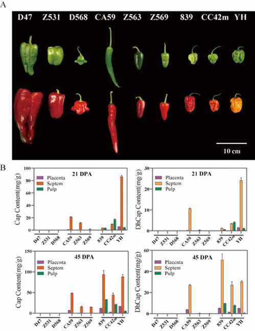 辣椒素(CAP)是辣椒中特有的次生代谢物,是其果实品质标志性状。自然界中,辣椒素具有抗真菌和细菌作用,提高了辣椒对病原菌的抵抗能力。此外,辣椒素在食品(调味物质)、医药(杀菌、止痛、抗癌等)、化工(生物农药原料)、军事(催泪弹的原料)等领域具有重要的应用价值。近年来,对于辣椒素生物合成及调控研究已较为深入,但对于辣椒素转运机制研究仍然空白。