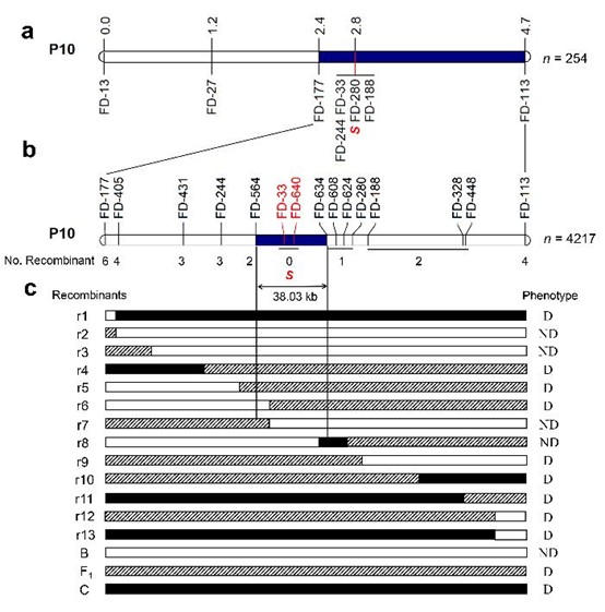 图2 辣椒成熟果实脱把基因的精细定位图谱