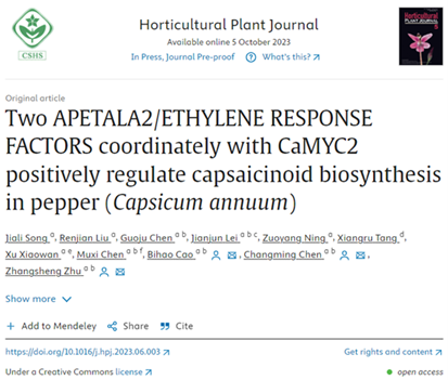 近日,园艺学院农业农村部华南地区园艺作物生物学与种质创制重点实验室等单位在辣椒素生物合成的转录调控中取得新进展。相关成果在Horticultural Plant Journal(农林科学1区Top期刊,影响因子5.7)发表题为“Two APETALA2/ETHYLENE RESPONSE FACTORS coordinately with CaMYC2 positively regulate capsaicinoid biosynthesis in pepper (Capsicum annuum)”的研究论文(论文链接:https://onlinelibrary.wiley.com/doi/10.1111/tpj.16257)。该研究表征了两个AP2/ERF转录因子(TF)在辣椒素生物合成过程中的作用,进一步揭示了辣椒素生物合成转录级联反应和调控网络,为创制高辣椒素辣椒新种质奠定基础。
